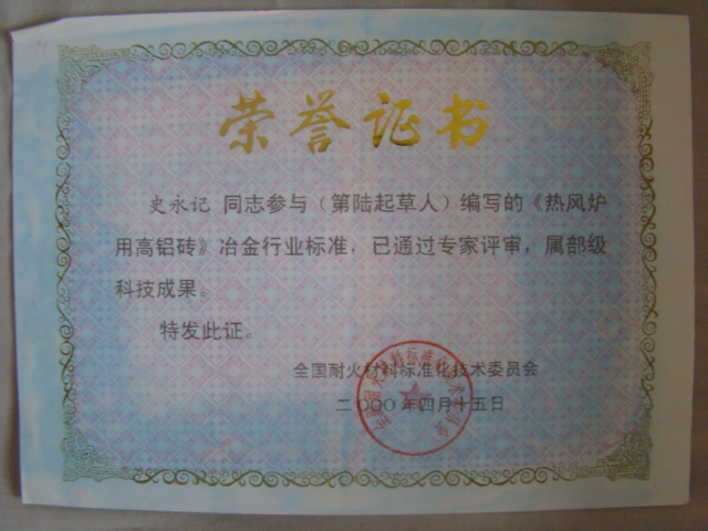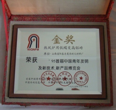 熱風爐用低蠕變高鋁磚、高荷軟高鋁磚獲省科技進步二等獎,微膨脹高鋁磚列入火炬計劃項目,炭素焙燒爐用特種高鋁磚已批準國家專利
